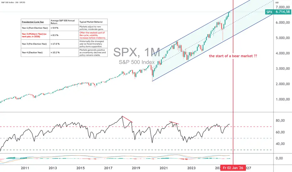 Dieses zweite Jahr ist üblicherweise das schwächste der vier Jahre und besonders anfällig für eine deutliche Konsolidierung des S&P 500 — was im aktuellen Zyklus dem Jahr 2026 entspricht.