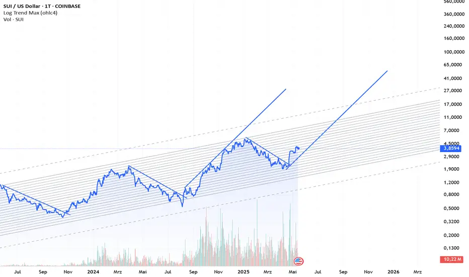 Der SUI-Chart zeigt eine klare Struktur steigender Hochs und Tiefs innerhalb eines logaritmischen Aufwärtstrends. Nach der Korrektur in Q1 2025 hat sich der Kurs wieder in den mittleren Trendkanal vorgearbeitet. Das aktuelle Preisniveau (~3,86 USD) könnte die Basis für den nächsten Schub in Richtung 7–11 USD bilden. Die dynamischen Ziellinien deuten auf ein mögliches beschleunigtes Trendverhalten bis Jahresende. Volumen bleibt hoch, was auf akkumulative Käufe hindeutet.