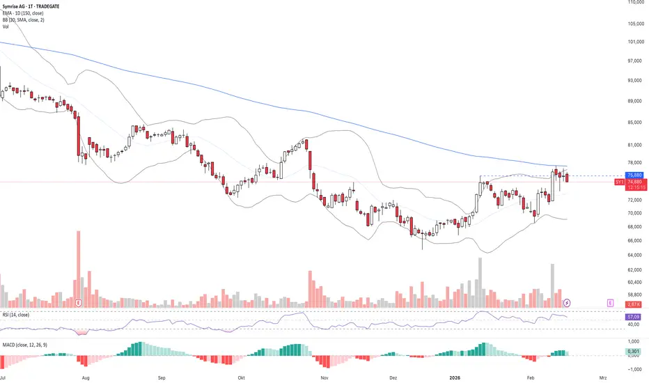 Symrise könnte, wie zum Beispiel auch die Bayer AG einen Turnaround hinlegen. Der MACD ist ins Positive gedreht, und der RSI liegt bei etwa 61. Der Kurs ist über das letzte Hoch gestiegen und damit aus dem Bollinger-Band ausgebrochen. Das Volumen während des Ausbruchs war erhöht.