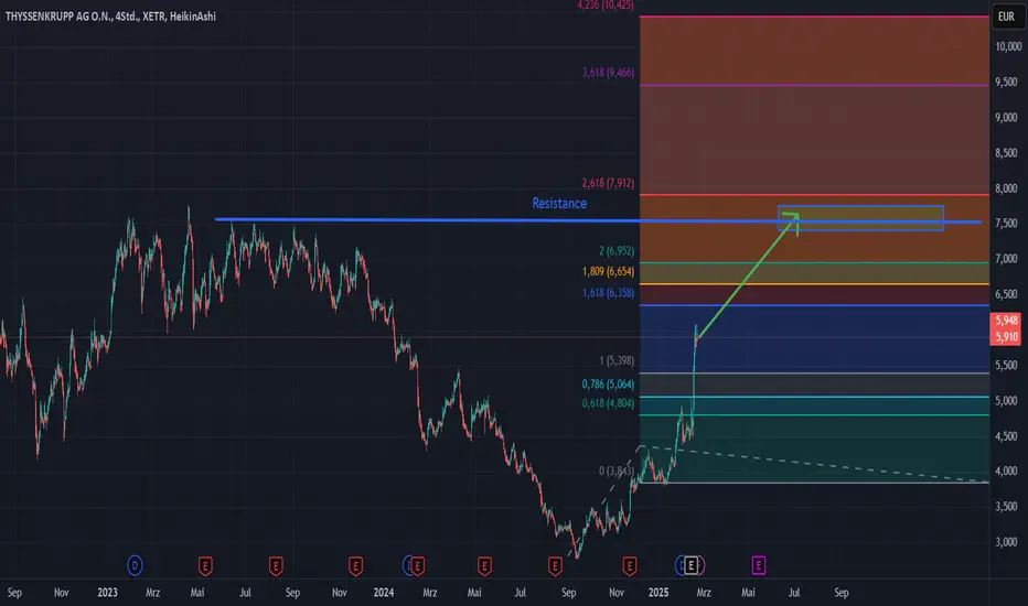 Positive Nachrichten beflügeln den Kurs von Thyssen Krupp .Wir befinden uns an einem kleinen Widerstand der nach einer leichten erholung überwunden werden sollte .Nächster wichtige Widerstand ist die blaue Resistance Linie. Keine Anlagenberatung oder Handelsempfehlung