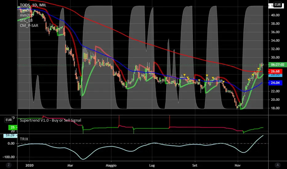 Supertrend, Stc e Trix positivi.