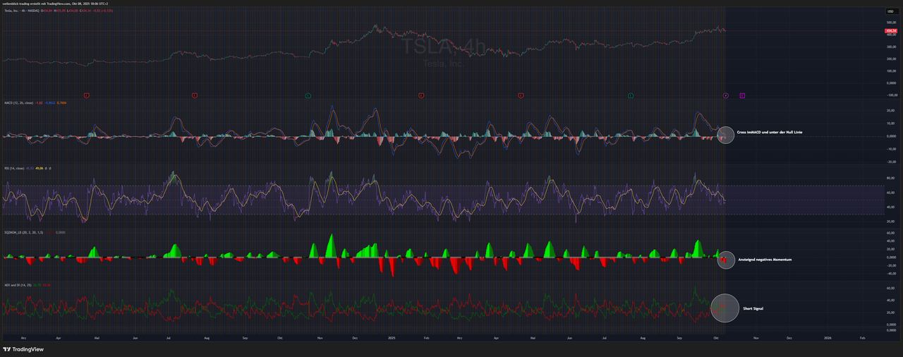 📊 Tesla – 4 Stundenchart (Indikatoren)