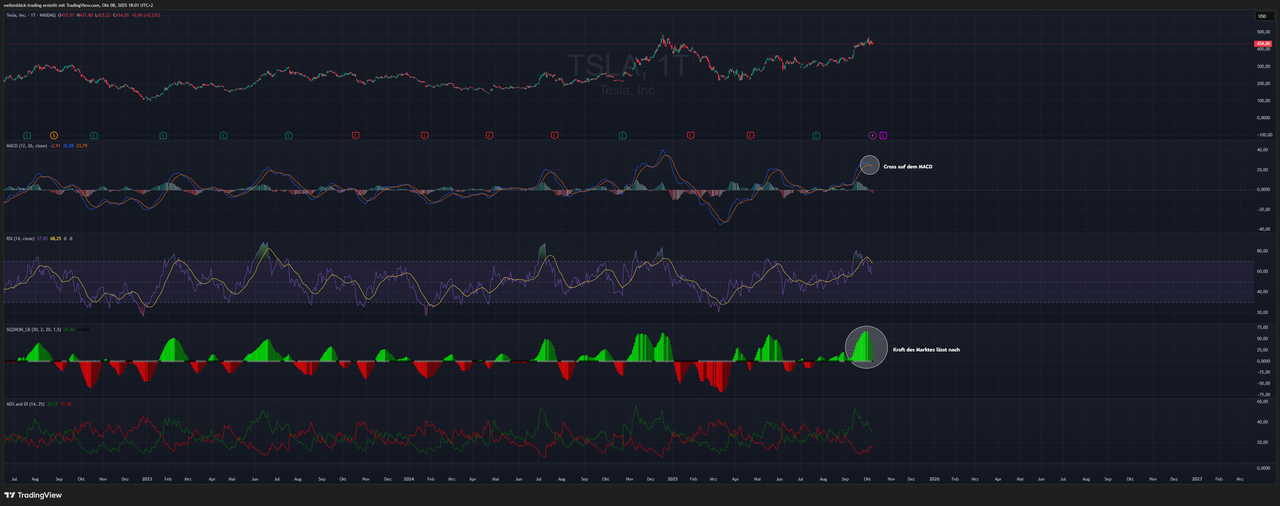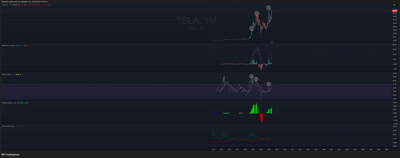 📊 Tesla – Monatschart (Indikatoren)