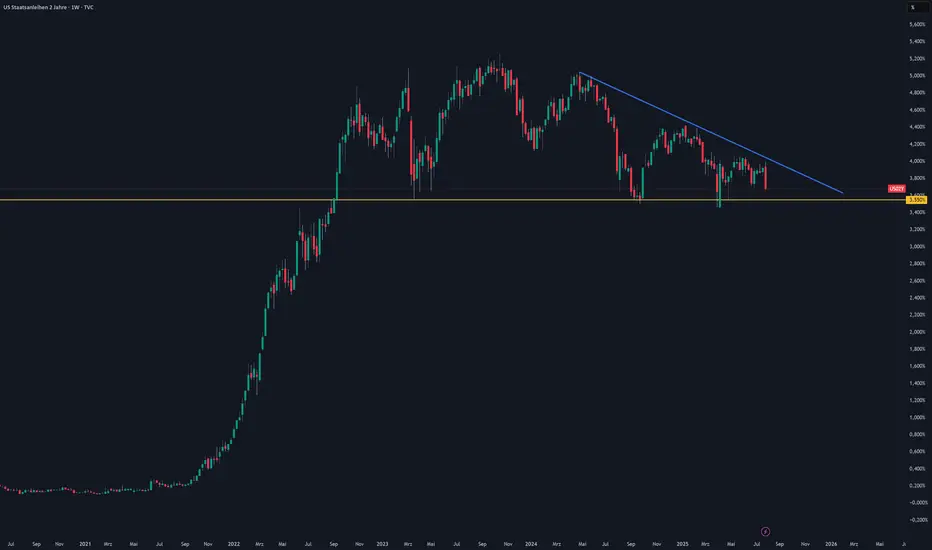 Die zweijährigen Staatsanleihen fallen stark und drohen den gelben Support zu brechen.