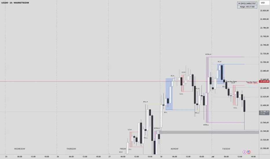 Wir haben daher im US100 ein True Open 2 Punkte unterhalb des Wochenopens, und gerade sind wir darunter.. ergo aktuell eher bärisch, und die New Week Opening Gap kommt wieder als Ziel in Sicht - 12540.