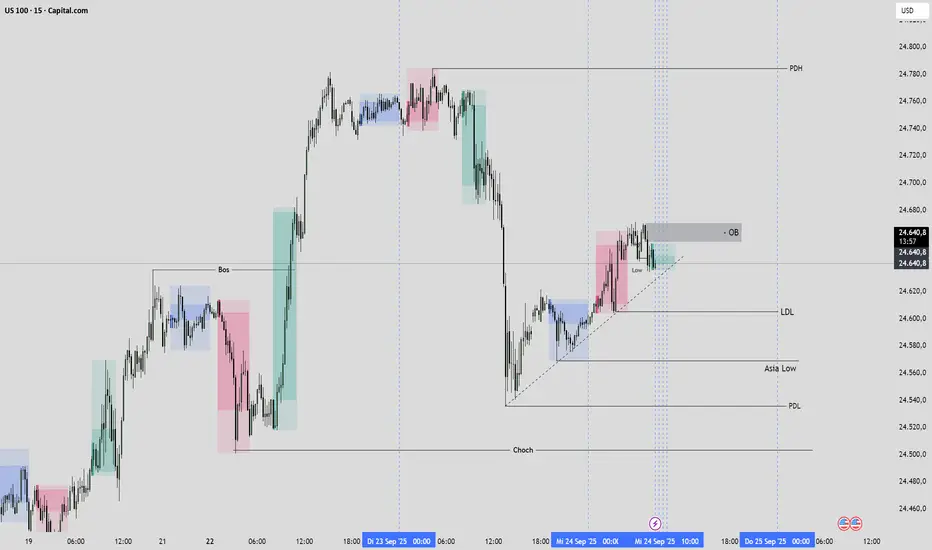 Wir Bilden eine Trendlinie und unten Liegt viel Liqi, Asia Low, LDL, PDL.