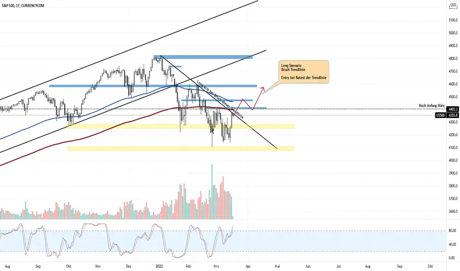 Charttechnisch sind wir beim SP500 nun an einer wichtigen Zone. Wir befinden uns aktuell an einer abwärts gerichteten Trendlinie. und Widerstand. Diese gilt es nun erst einmal zu brechen, bevor wir wirklich wieder bullisch sein können.