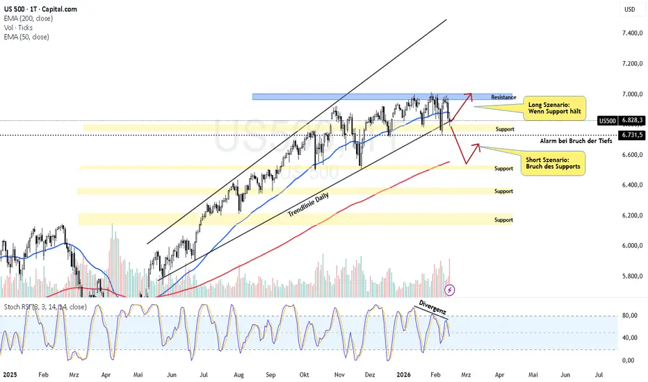 Nun - trotz niedriger Inflationsdaten, ging es Freitag leicht bergab. Das ist meines Erachtens kein gutes Signal. Die große Frage ist nun - hält der Support oder nicht. Gerade die zwei Tiefs bei 6730 vom Dezember und Februar sind äußerst relevant.
