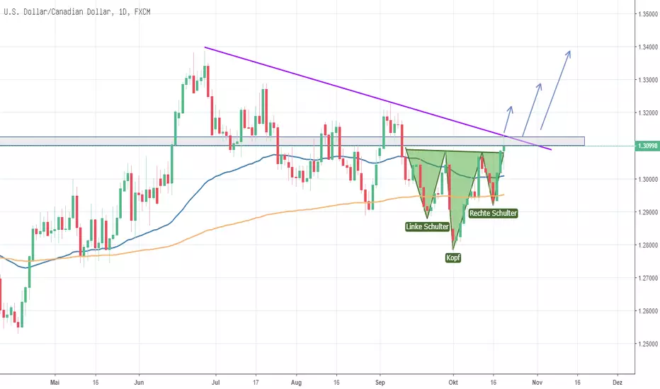 Im USD/CAD ist in der Korrektur des übergeordneten Aufwärtstrend eine inverse S-K-S Formation zu erkennen. Aus Sicht der Charttechnik, könnte hier der Preis in den nächsten Tagen steigen. Jedoch sollte ein valider Bruch des grauen Widerstands zur Sicherheit abgewartet werden.