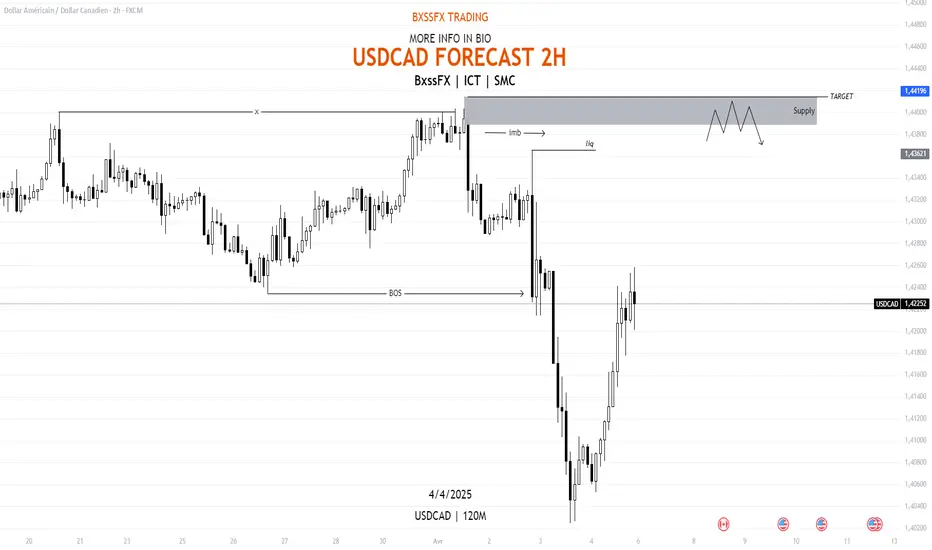 🔹 TYPE D’ORDRE : Vente après réaction sur la zone de supply avec structure baissière confirmée