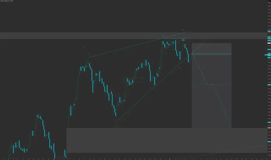 Der Markt hat am oberen Supply deutlich reagiert und die Rising-Wedge-Struktur nach unten verlassen. Aktuell sehen wir einen Retest der ehemaligen Trendlinie. Solange der Preis unter dem letzten lokalen Hoch bleibt, bleibt der Fokus auf der Short-Seite.