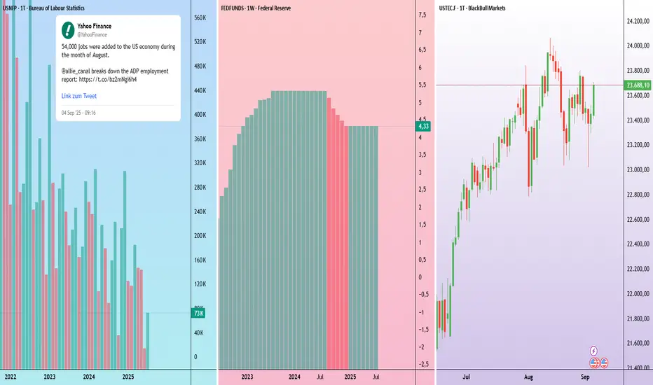 Die Händler hoffen auf ein Ergebnis, das eine Zinssenkung rechtfertigt, aber keine Befürchtungen hinsichtlich einer Abschwächung der Konjunktur weckt. Der ADP-Bericht über die Beschäftigungszahlen im privaten Sektor zeigte für August 54.000 neue Arbeitsplätze. Die Aktienkurse stiegen aufgrund dieser Nachricht, da die Wall Street die Zahl als schwach genug ansah, damit die Fed im September die Zinsen senken könnte, aber nicht so schwach, dass sie eine Rezession signalisiert.