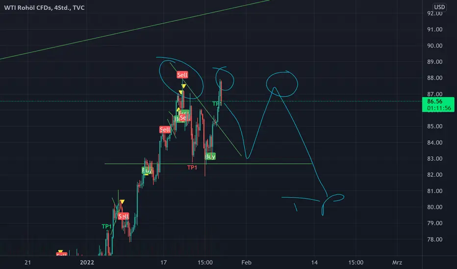 Mal sehen ob wir es bis zum Support bei 82$ schaffen bevor es wieder nach oben geht, dann stellt sich die Frage, 92$ oder Tripple Top?
