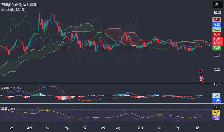 📌 WTI bleibt unter 74 USD in einer bärischen Struktur – das große Short-Ziel liegt zwischen 58 und 50 USD.