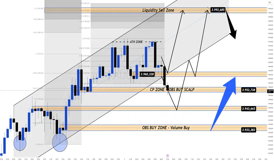 Buy Zones: 3935–3933 (CP-Zone & FVG-Reaktion) bieten eine Gelegenheit, Positionen zu sammeln.