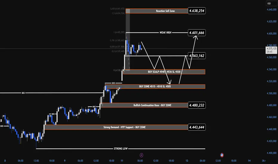Mit der hohen Sensibilität von USD + Renditen kann Gold umintraday Überschriften stark schwanken. Deshalb jage ich keine Kerzen — ich lasse den Preis zu den kartierten Liquiditäts- + OB-Zonen kommen und reagiere mit Bestätigung.