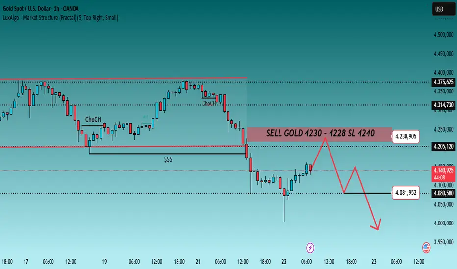 • Premium-Zone: Der Bereich 4.230–4.228 stimmt mit einem H1-Orderblock und einem früheren Liquiditätspool überein — eine erstklassige Zone für den Wiedereinstieg in Short-Positionen.