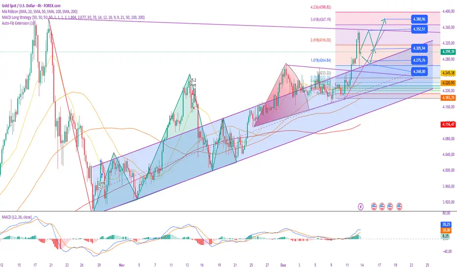 Kursziele: 4.300 $ → 4.320 $ → 4.340 $ (progressiv nach oben)