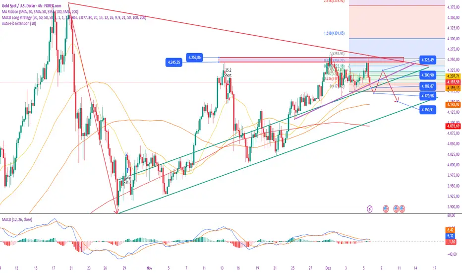 Erster Widerstand: 4.220 $ – 4.230 $ (Druck durch kurzfristige Trendlinie)