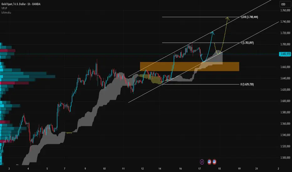 XAUUSD auf OANDA hält einen stetigen Aufwärtstrend in einem Aufwärtstrendkanal aufrecht, wobei die dynamische Unterstützung bei 3.660 $ mit der Ichimoku-Wolke und dem Volumencluster auf VRVP zusammenfällt.