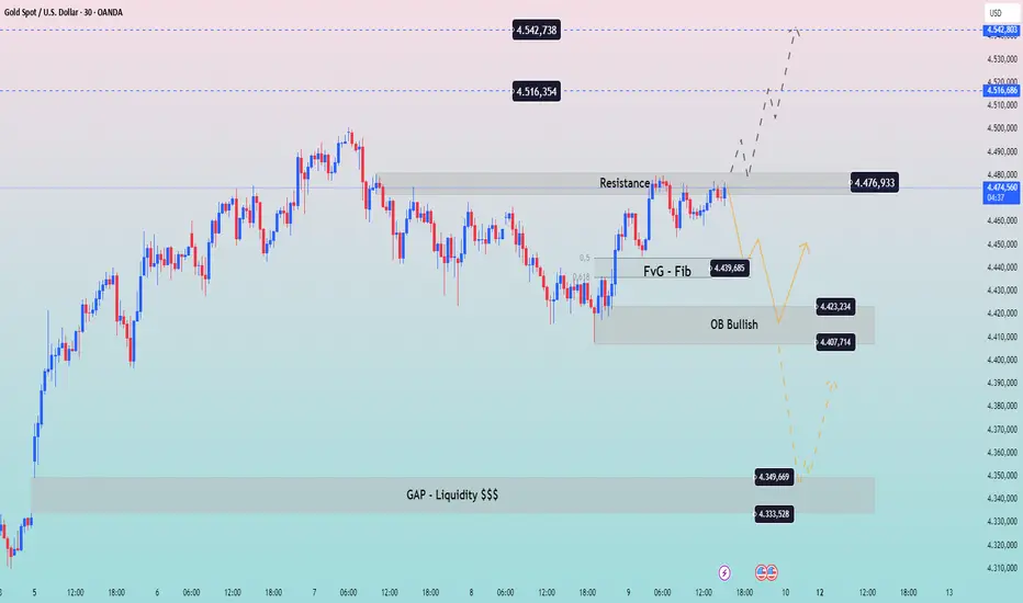 • FVG + Fibo: 4.440 – 4.423