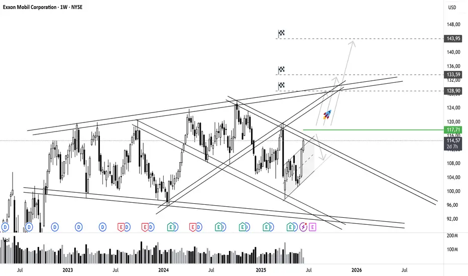 ExxonMobil befindet sich aktuell direkt an einer entscheidenden, fallenden Widerstandslinie. Aus technischer Sicht gehe ich davon aus, dass dieser Widerstand nachhaltig überwunden werden kann. In der Folge rechne ich in den kommenden Wochen mit einem deutlichen Kursanstieg.