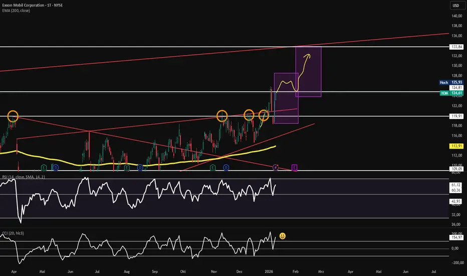 Der Kurs liegt bei 124,60 Dollar. Wiederstand wird es geben bei 125,90 Dollar und das erste Ziel werden 133 Dollar. SL 113 Dollar.