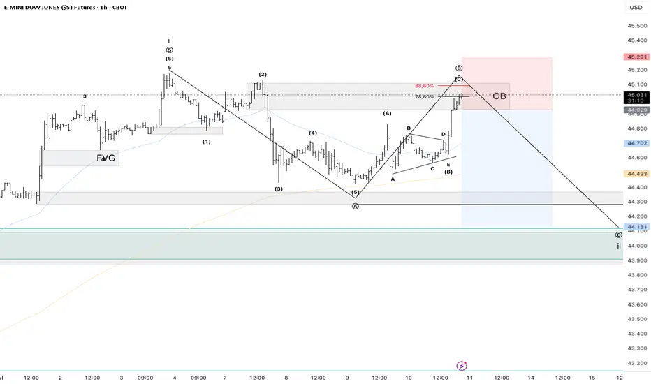 Während ich diesen Blog schreibe, drückt der Dow weiter munter nach oben, befindet sich allerdings in meiner OB Zone. Vorher gab es eine Impulsive( 5wellig) Zählung nach Süden und schließt womöglich gerade die Korrektur(3wellig) ab. Die Annahme für die Korrektur ist die, dass nach der ersten Welle "(A)", eine Dreieckskorrektur zusehen ist. Die Korrektur nach der ersten Welle darf niemals einen Dreieck ergeben. Wenn doch, wie in diesem Fall, ist die Bewegung korrektiv.