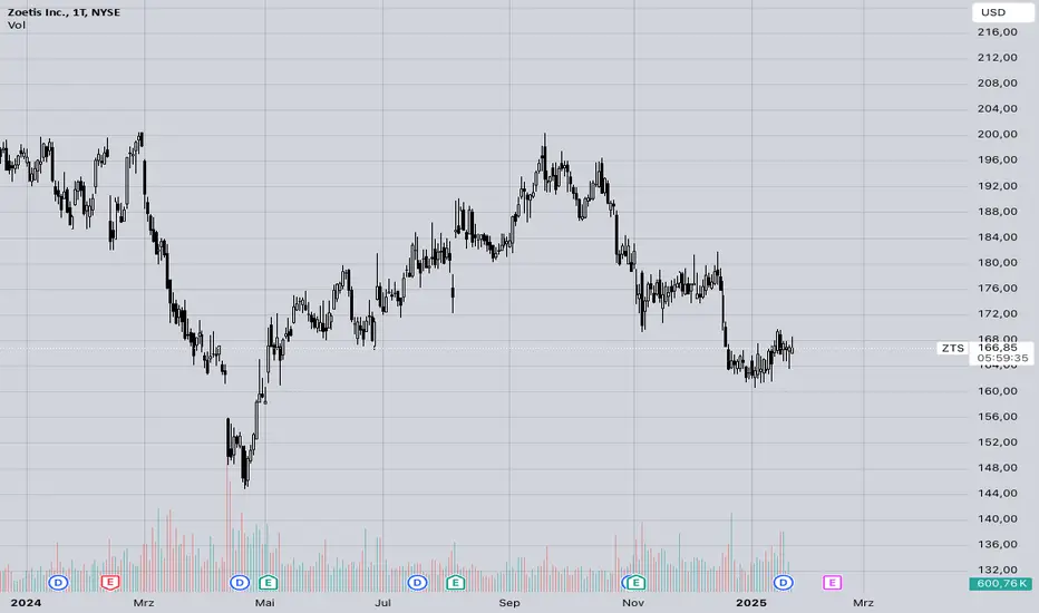 Rationale: Obwohl Zoetis über eine starke Marktposition verfügt, könnten kurzfristige Volatilitäten und die Ergebnisse der nächsten Quartalsberichte den Kurs beeinflussen.