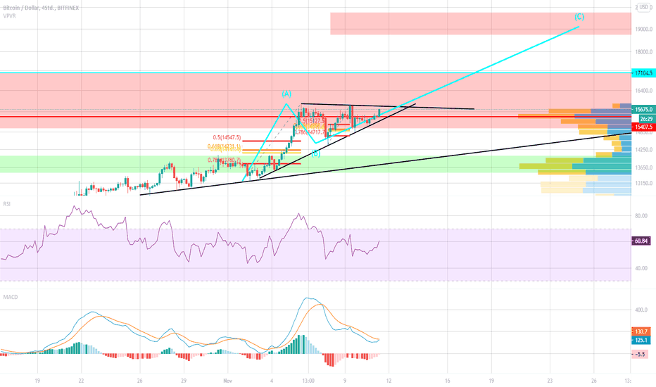 BTC/USD Ausbruch in Sicht!Nach dem der ETH/USD Kurs bullisch aus den Symmetrischen Dreieck gebrochen ist, könnte der Bitcoin Kurs nachziehen und das selbe machen. Durch der letzten leichten Korrektur könnte der Bitcoin Kurs ebenfalls eine B Welle vollendet haben. Sollte der Kurs über der A Welle kommen, würde erste Widerstand von der ABC-Sequenz bei : $17.100 liegen. Von dort aus könnte es eine Korrektur geben, wo man sich aber nicht sicher sein kann, grad in einen Bullrun.