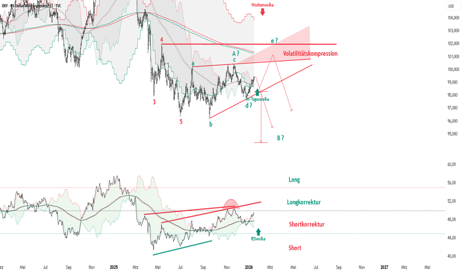 RSI-Wolke: Abwärtstrend, aber noch in der Korrektur-Long-Zone