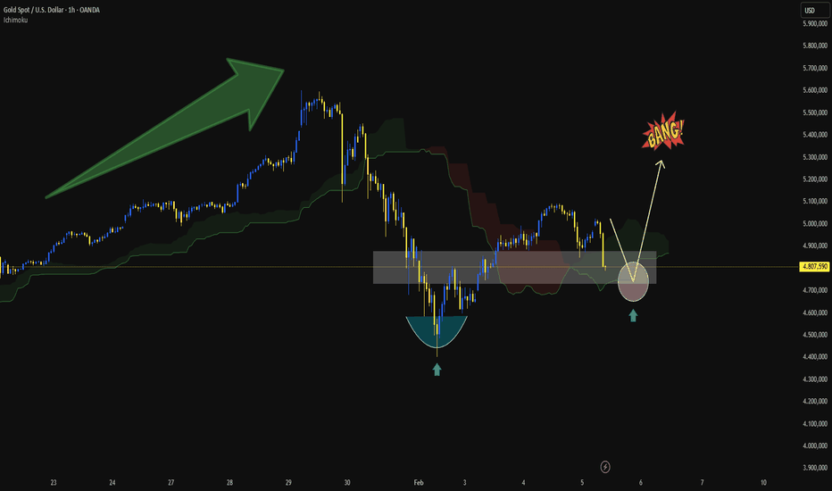 Der Aufwärtstrend begünstigt weiterhin GoldDer Preis zieht sich in den wichtigen Nachfragebereich rund um den runden Boden zurück und überlappt die horizontale Unterstützung + die untere Grenze des Ichimoku-Bereichs →, um guten Verkaufsdruck aufzufangen.