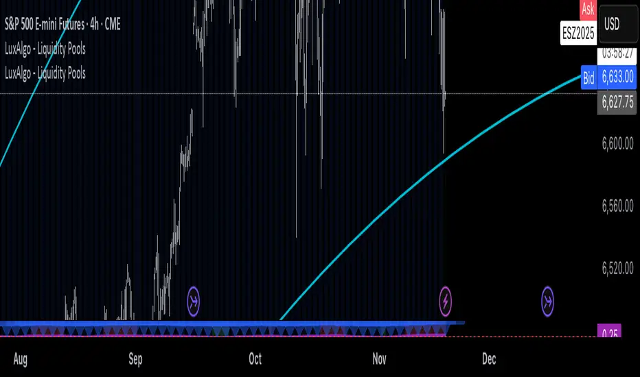 This indicator measures the market’s emotional state using a combination of volatility and momentum, scaled with natural ratios like Pi and the Golden Ratio. When the vibrational state drops into the fear zone, the indicator suggests a potential buying opportunity (‘BUY CALL’). When it rises into the greed zone, it signals a potential selling opportunity or buying a put (‘BUY PUT’). Green labels indicate fear-driven buying opportunities, red labels indicate greed-driven selling opportunities, and the purple line shows the smoothed vibrational state of the market.