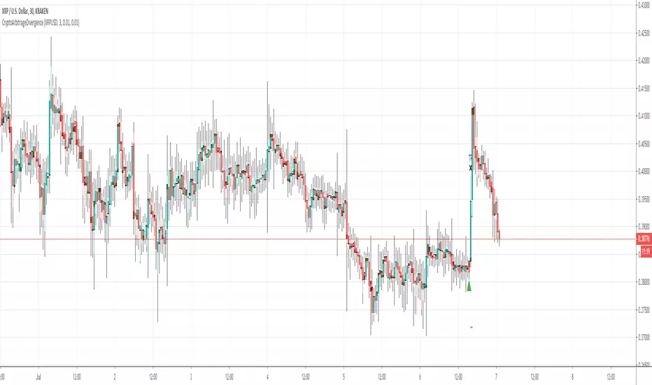 Buy-/ Sell signals are generated, when the price is rising on one exchange, while it is falling on the other exchange.