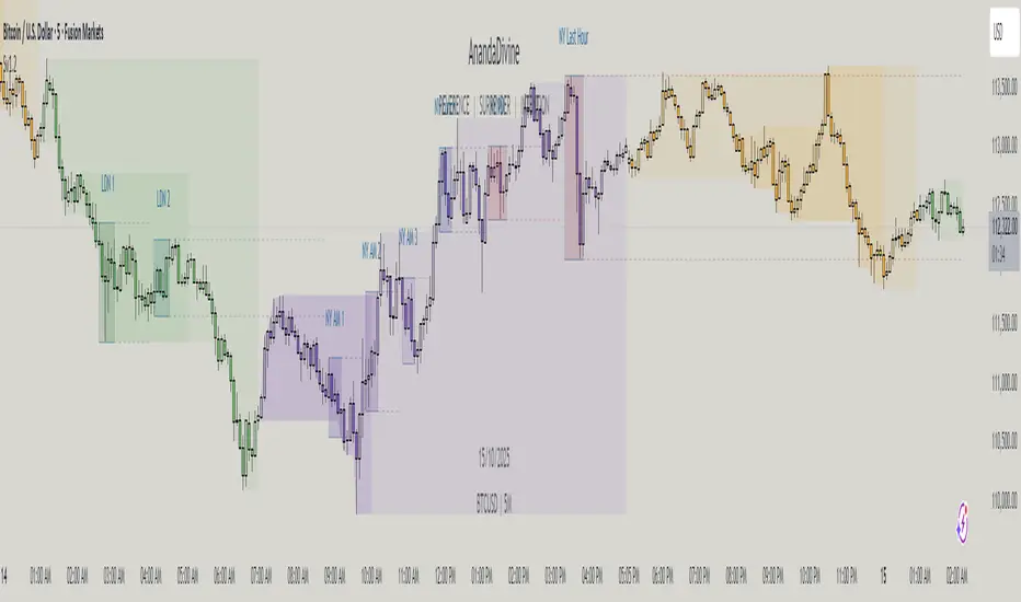Version 1.0This indicator consolidates Sessions, Killzones, and Macros into a single, fast and efficient tool. It was created to eliminate the need for multiple separate indicators, offering a cleaner and more streamlined experience.