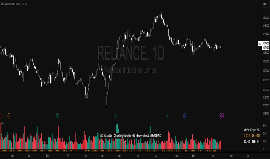 It combines volume analytics, risk-adjusted position sizing, and stock-specific financial data — all in a clear, visual, and automated format directly on TradingView charts.