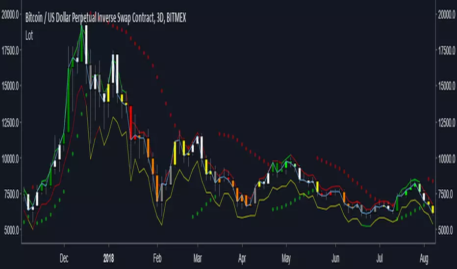 Parabolic SAR calculated as .02, .02, .2. Traditional Buy/Sell. Green/Red Dots.