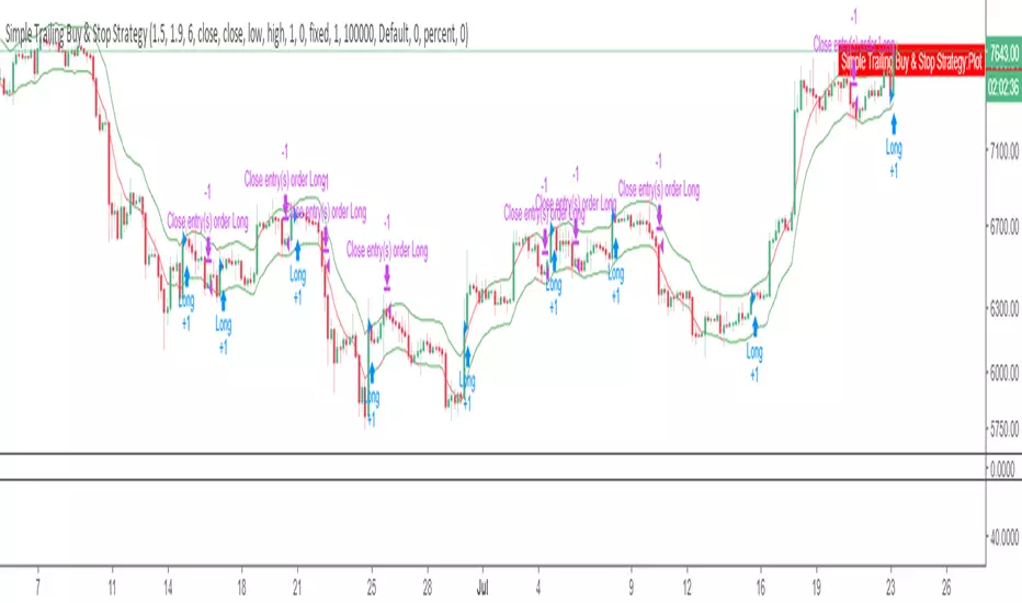 Allows you to backtest a simple percentage based trailing stop, with a trailing buy. Experiment with different percentages on different timeframes for different charts.