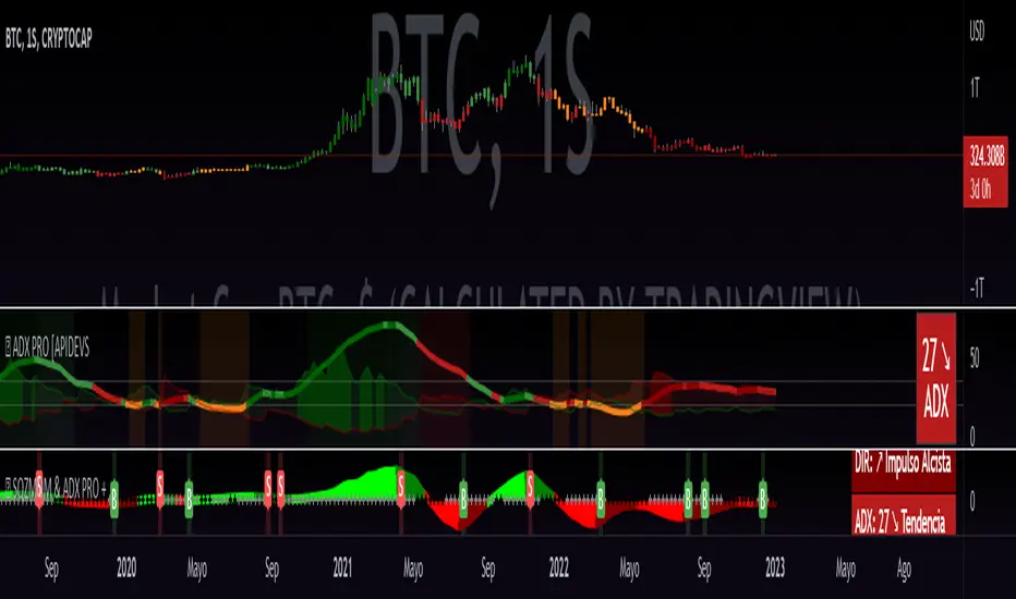 Es un indicador de tipo oscilador no direccional, es decir, cuantifica la fuerza de una tendencia independientemente de su dirección. En español ADX significa índice de dirección media. Es común usarlo junto con indicadores direccionales de movimiento como el (Squeeze Momentum Indicator), que nos muestran la dirección o tendencia predominante del mercado.
