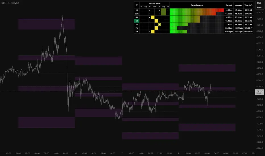 o Range Completed: The percentage of the historical average range that the current period has already covered.