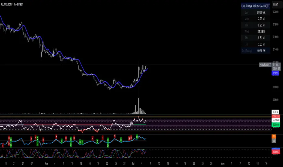 This Pine Script indicator displays the trading volume for each day of the current week (Monday through Sunday) in a clean table format on your TradingView chart. The volume is calculated in USDT equivalent and displayed in the top-right corner of the chart.