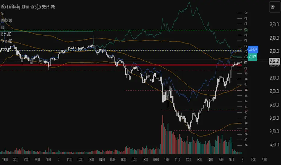 • Provides a quick, visual “volatility baseline” directly on the MNQ chart without juggling two panes.