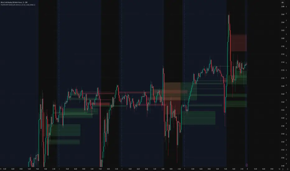 • **MTF Confluences**: Multiple FVGs from different timeframes at the same level = strong institutional zone