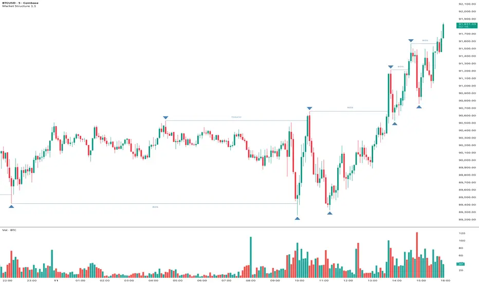 Beyond just marking pivots, this indicator also draws BOS (Break of Structure) and CHoCH (Change of Character) lines — two essential concepts that help you understand when a trend is continuing or potentially reversing.