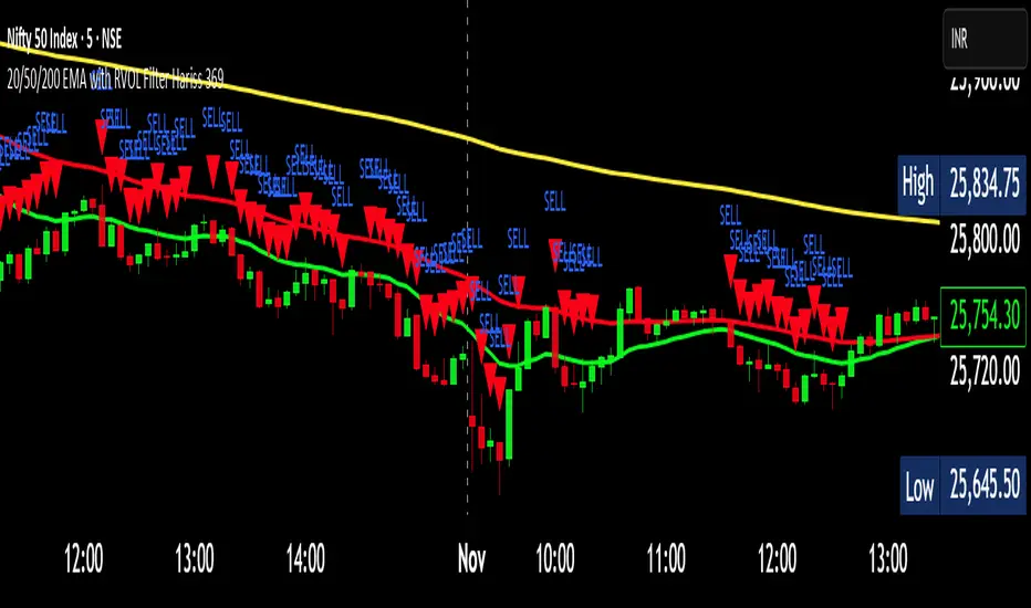 20/50/200 EMA with RVOL Filter Hariss 369