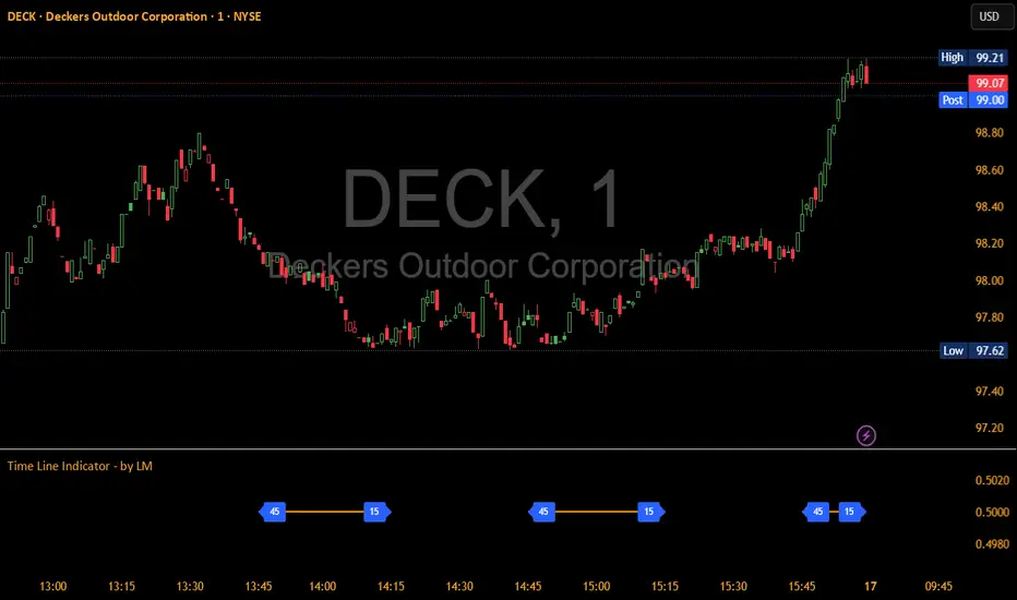 The Time Line Indicator is a simple, clean, and customizable tool designed to visualize specific time periods within each hour directly in a dedicated indicator pane. It allows traders to mark important intraday minute ranges across multiple past hours, providing a clear visual reference for time-based analysis. This indicator is perfect for identifying recurring hourly windows, session patterns, or custom time-based events in your charts.