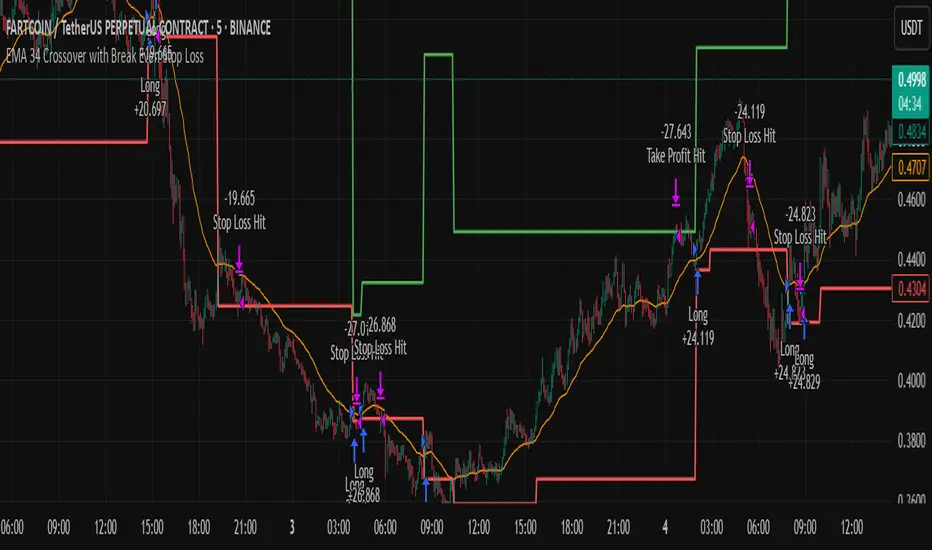 EMA 34 Crossover with Break Even Stop Loss Strategy