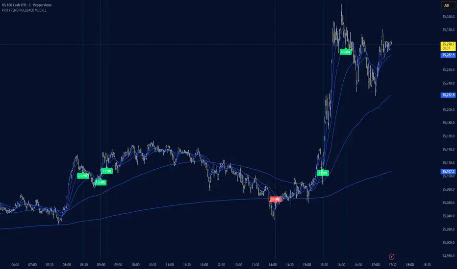 PRO TREND PULLBACK – trend-following pullback strategy (NAS100 / US30 focus, 1m)