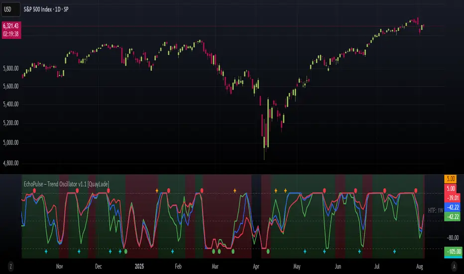 The EchoPulse™– Trend Oscillator [QuayLade] is a proprietary invite-only script. Unauthorized distribution, reverse engineering, or decompilation of this script is strictly prohibited.