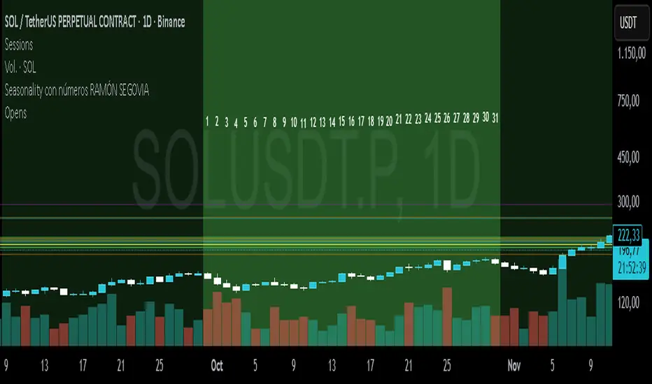 This indicator paints vertical background stripes by calendar month on your chart, making it easy to run statistical/seasonality analysis, compare monthly performance, and visually identify recurring patterns across assets and timeframes.